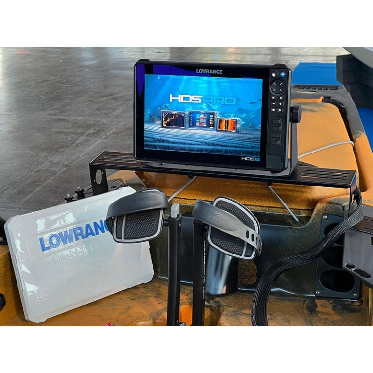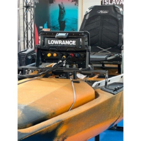 Mit dieser stabilen Halterung lässt sich ein größerer Echolot-Bildschirm direkt vor dem Antrieb montieren – perfekt im Sichtfeld und jederzeit griffbereit. Die Konstruktion sorgt für eine sichere und vibrationsfreie Befestigung, ohne den Rumpf zu beschädigen.