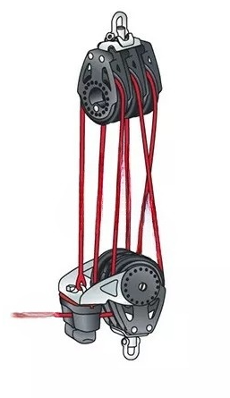 Der robuste und leichtlaufende 57 mm Carbo-Dreifachblock mit integrierter Cam-Matic Curryklemme und Hundsfott wurde speziell für eine leistungsfähige 6:1-Talje entwickelt.