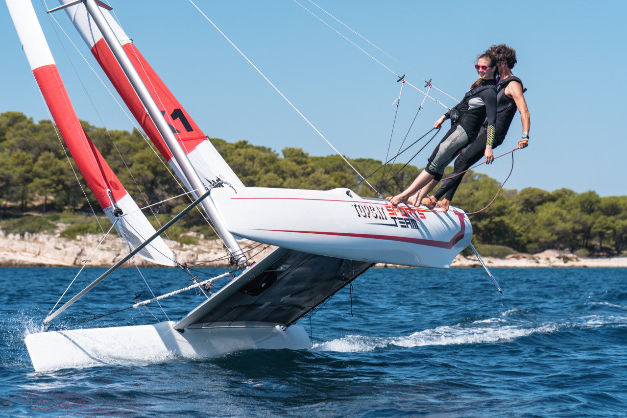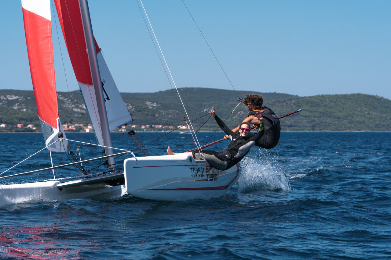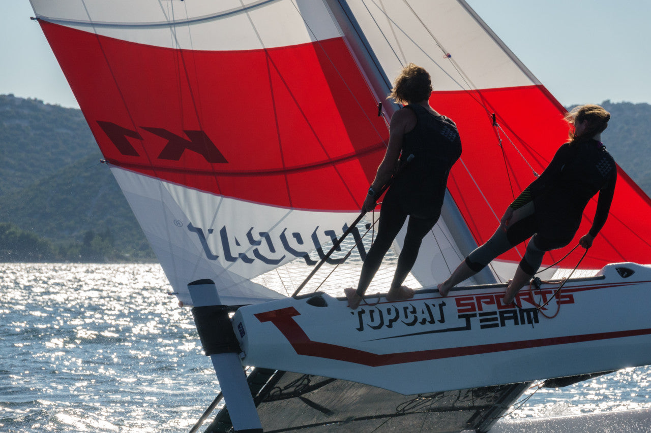 Der TOPCAT K1 Active ist das Flaggschiff und damit der große Catamaran der Topcat-Flotte insgesamt. Mit 18 Fuß ist es einer der derzeit schnellsten schwertlosen Catamarane der Welt. Aktuell ist rd beides: innovatives Design und überlegene Technik und insgesamt dem bewährten Konzept des Topcat Hochleistungskatamarans folgend. Der gesamte Kat wurde 2014 bis ins Detail überarbeitet und optisch neu gestaltet. Die Active Equipment Version ist oft der preiswerte Einstieg für TOPCAT Segler: ein klassischer Spass-, Familien- und Urlaubs-Katamaran; gut beherrschbar auch für Neueinsteigert, vom Handling und vom Preis. Augenmerkt liegt auf ein einfaches Handling. Grosssegel und Fock sind serienmässig aus Dacron oder als Mylar-Segel erhältlich. Optional sind die Rümpfe mit Kiel- Schutz erhälich.