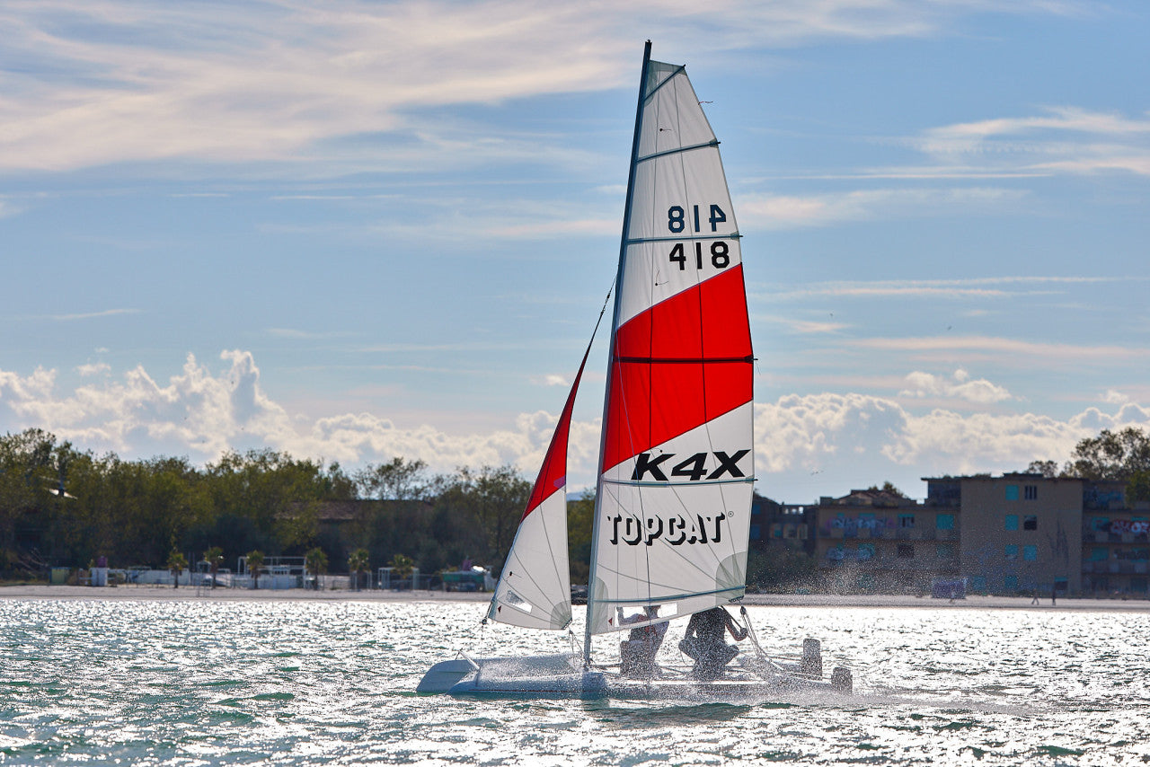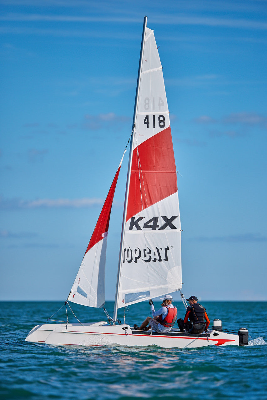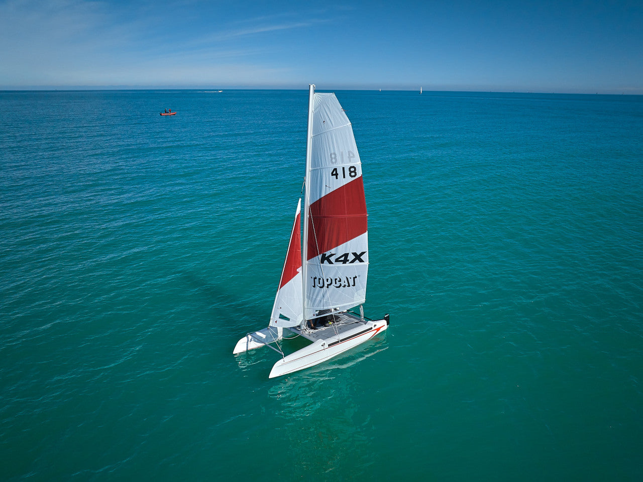Im neuen Look ist der TOPCAT K4X seit März 2017 erhältlich. Durch seine Größe und sein geringes Gewicht ist der K4X ein ideales Einsteigerboot für alle, die unkomplizierten, aber individuellen Segelspaß suchen. Mit einem Gewicht von 115 kg ermöglicht das Boot ein müheloses Handling beim Aufriggen, Slippen oder Aufrichten nach einer Kenterung - von einer Person allein oder mit der ganzen Familie.