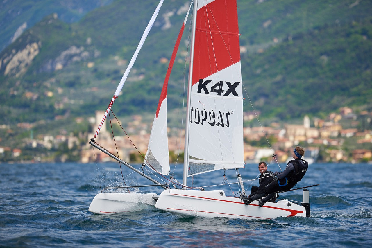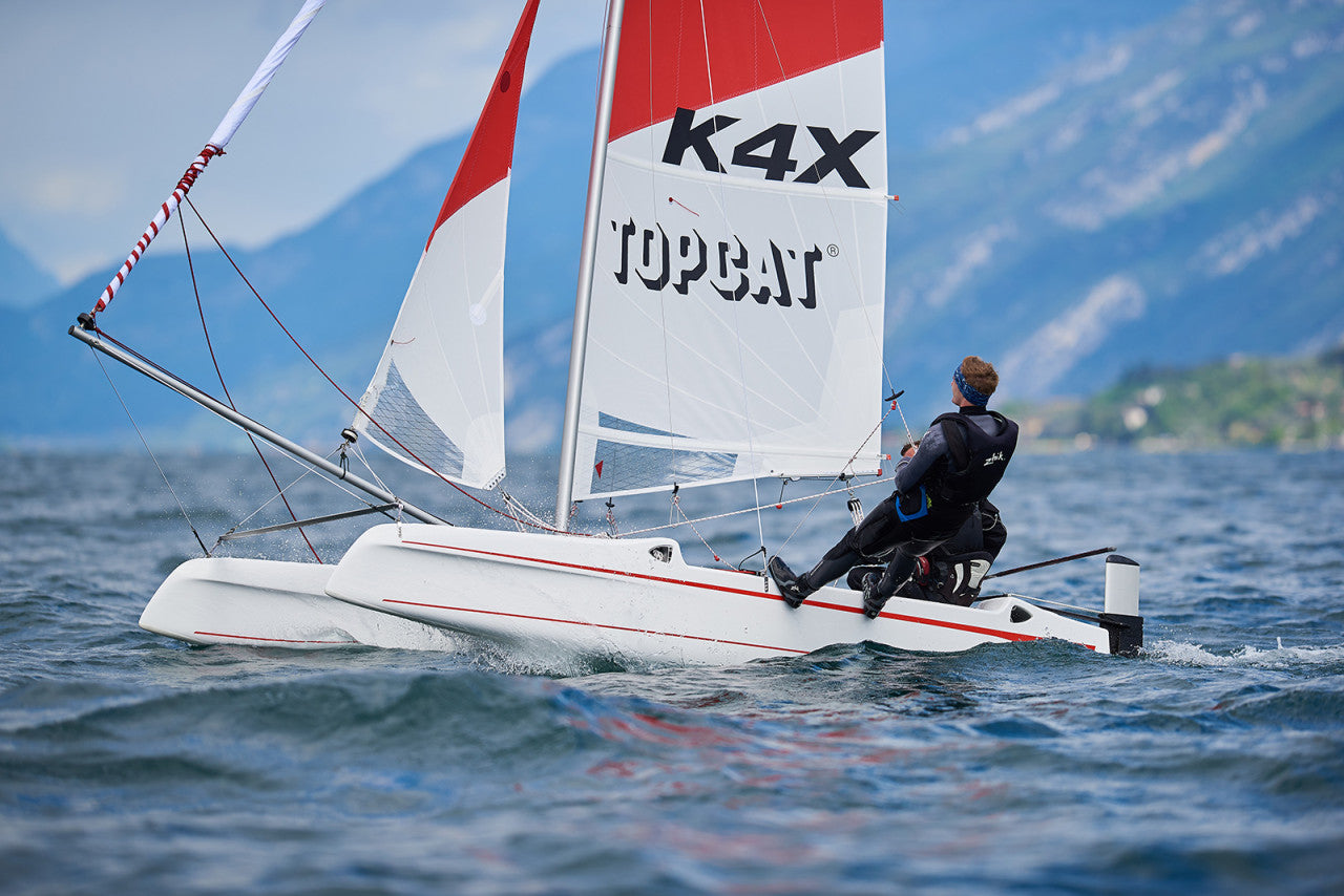 Im neuen Look ist der TOPCAT K4X seit März 2017 erhältlich. Durch seine Größe und sein geringes Gewicht ist der K4X ein ideales Einsteigerboot für alle, die unkomplizierten, aber individuellen Segelspaß suchen. Mit einem Gewicht von 115 kg ermöglicht das Boot ein müheloses Handling beim Aufriggen, Slippen oder Aufrichten nach einer Kenterung - von einer Person allein oder mit der ganzen Familie.