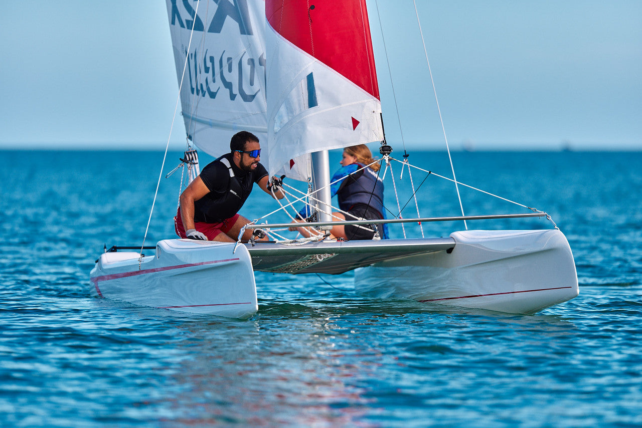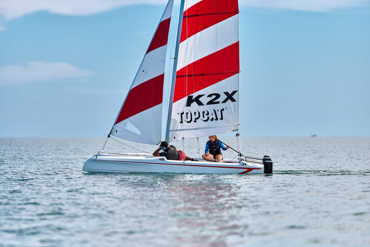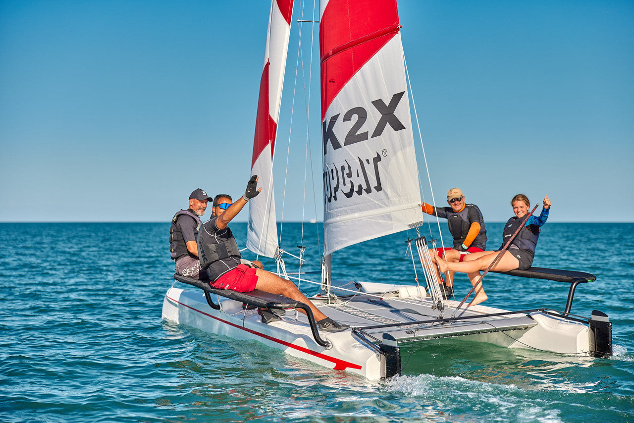 In der Active-Konfiguration ist der K2X der Star für Freizeitsegler und Familien. Flexibel und variabel wie kein anderer Catamaran bietet er genug Platz für vier Erwachsene, aber kann auch alleine gesegelt werden. Das Boot kann mit dem Können des Seglers mitwachsen und bietet den perfekten Einstieg ins sportliche Segeln.Die Segel haben genug Power, so dass auch bei moderatem Wind das Doppeltrapez genutzt werden kann.